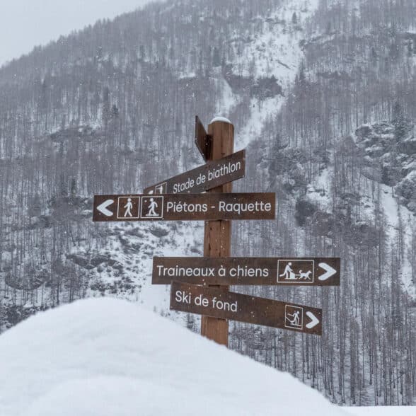 Suivez les panneaux signalétiques présents sur les sites nordiques et restez sur les itinéraires balisés.