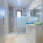 - une salle de bains avec douche à l’italienne et meuble vasque